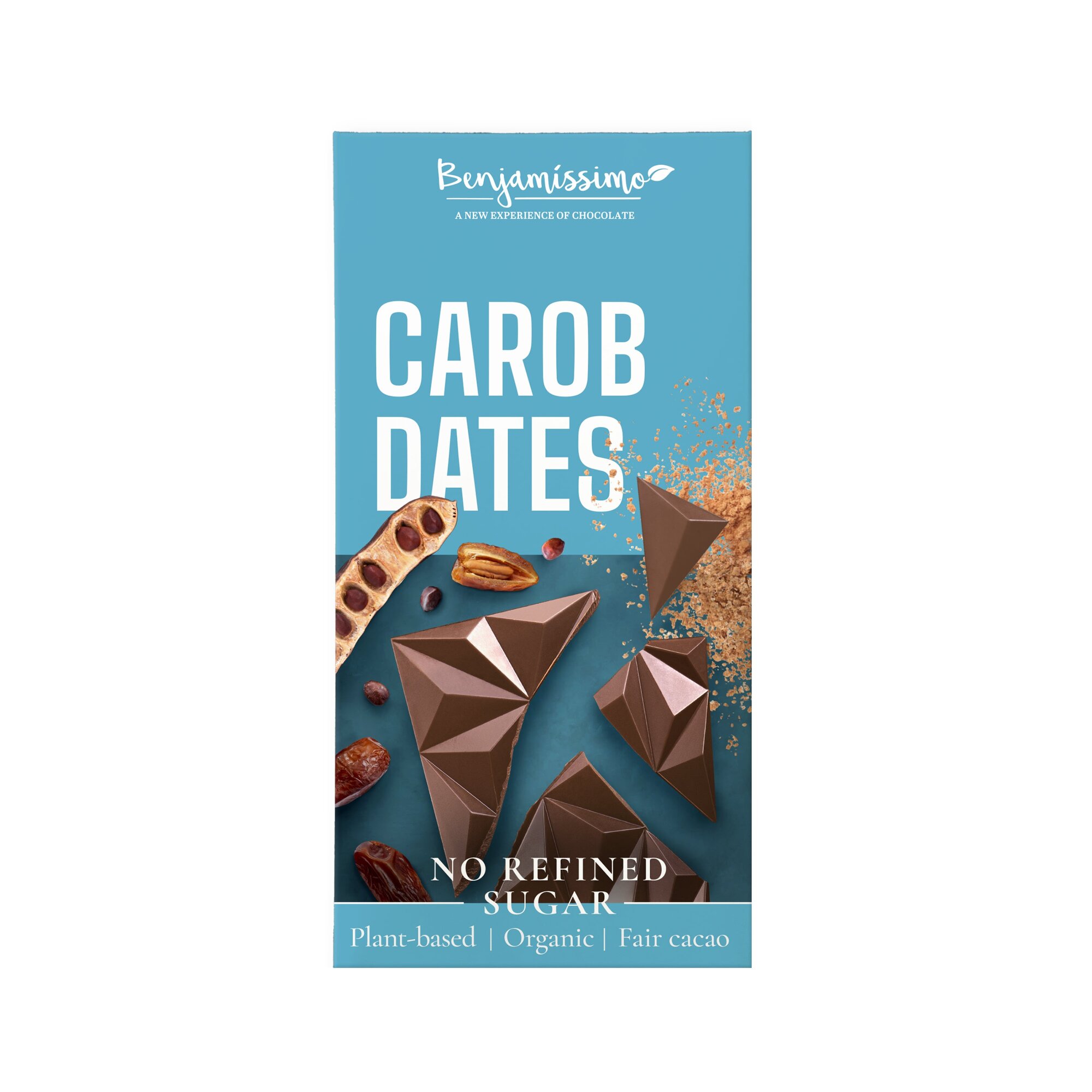 Kakaové máslo, datlový prášek 30 %, karobový prášek 25 %, kokosový krém, emulgátor: slunečnicový lecitin. Obsah kakaového másla minimálně 32 %. Může obsahovat stopy SKOŘÁPKOVÝCH PLODŮ. Obsahuje přirozeně se vyskytující se cukry. produkt kontrolovaného ekologického zemědělství