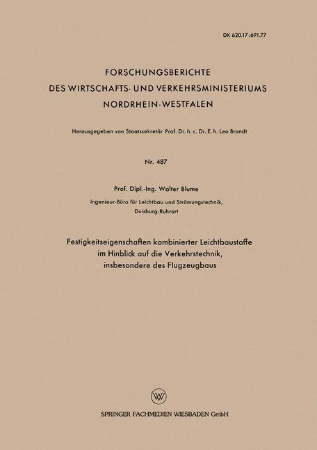 Festigkeitseigenschaften kombinierter Leichtbaustoffe im Hinblick auf die Verkehrstechnik, insbesondere des Flugzeugbaus (německy)