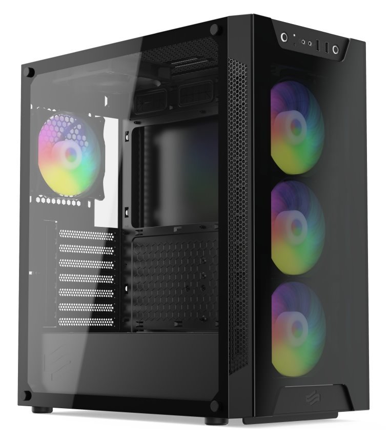 SilentiumPC skříň MidT Armis AR6X EVO TG ARGB / 2x USB 3.0 / 5x 120 mm fan / tvrzené sklo / A-RGB podsvícení / černá