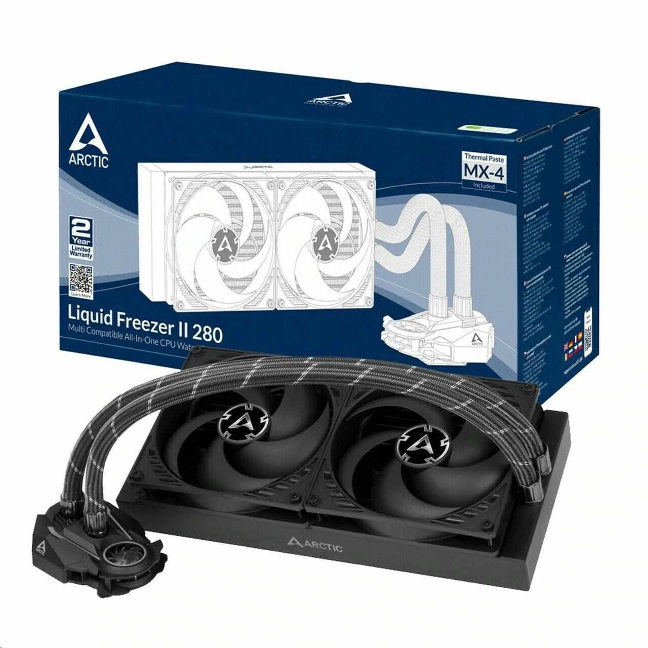 Arctic Liquid Freezer II 280Kvalitní all-in-one kapalinový chladič CPU, 2x 140 mm ventilátor, potažené hadičky 450 mm, rychlost 200/800-1700/2000 RPM (ventilátor/pumpa), aktivní PWM, průtok vzduchu 72,8 CFM, úroveň hluku 0,3 son, pro sockety Intel 115X/2011-3*/2066* (*čtvercové) a AMD...