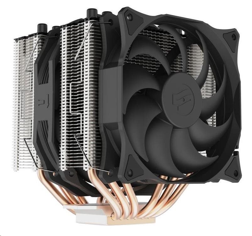 Ultratichý chladič je vybaven 6 heatpipe a dvěma ventilátory o velikosti 140 mm a 120 mm s PWM regulací. K připojení slouží 4-pin PWM konektor.
