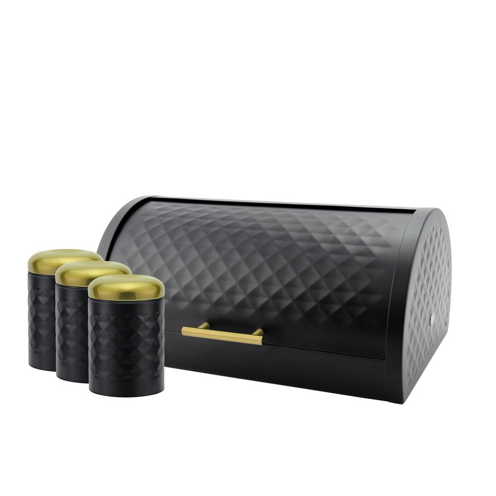 HAUS ROLAND Chlebník kovový+3 dózy na potraviny, kov s lakovanou vrstvou,barva černá