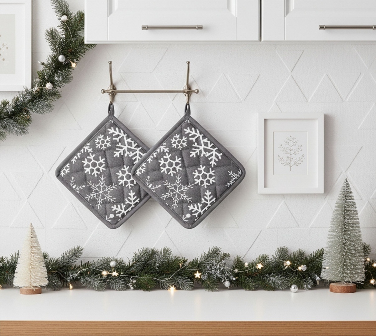 Užijte si kombinaci kuchyňského doplňku a vánoční elegance s touto univerzální podložkou.Je to praktický pomocník 3 v 1, který se stane nepostradatelnou součástí vaší kuchyně.Využijte ji jako spolehlivou podložku pod horké hrnce, pekáče či čajové džbány, a ochraňte tak svou kuchyňskou linku před...