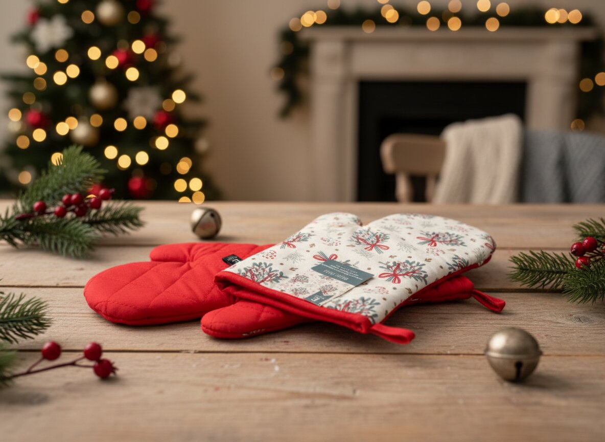 Vánoční kuchyňské rukavice chňapky BRIGHT TWIGS 18x30 cm 100% bavlna