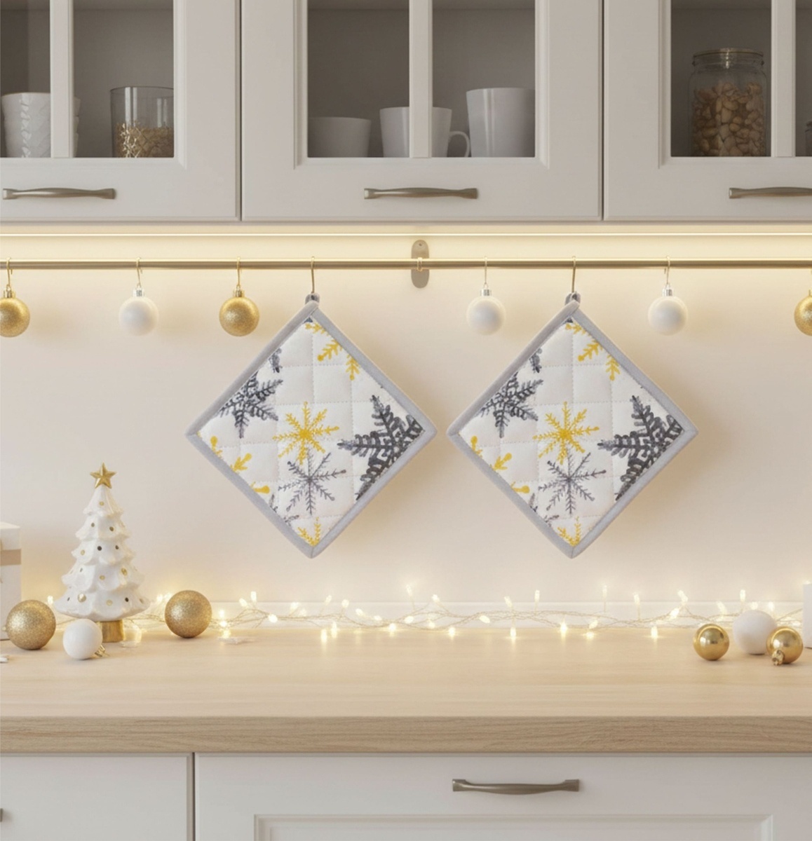 Užijte si kombinaci kuchyňského doplňku a vánoční elegance s touto univerzální podložkou. Je to praktický pomocník 3 v 1, který se stane nepostradatelnou součástí vaší kuchyně. Využijte ji jako spolehlivou podložku pod horké hrnce, pekáče či čajové džbány, a ochraňte tak svou kuchyňskou linku...