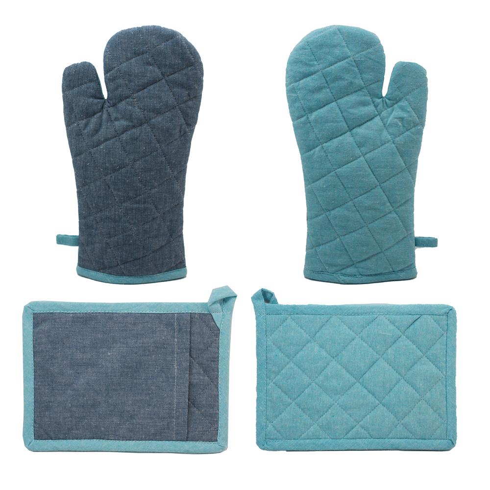 Chňapka s magnetem a podložkou z recyklované bavlny v kombinaci barev světle modrá a tmavě modrá prečítať celé