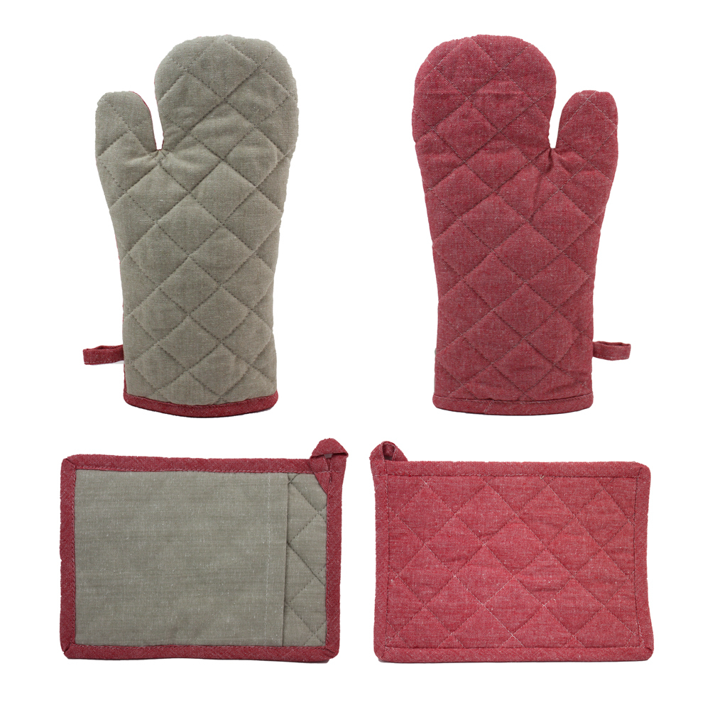 Chňapka s magnetem a podložkou z recyklované bavlny, béžová + červená