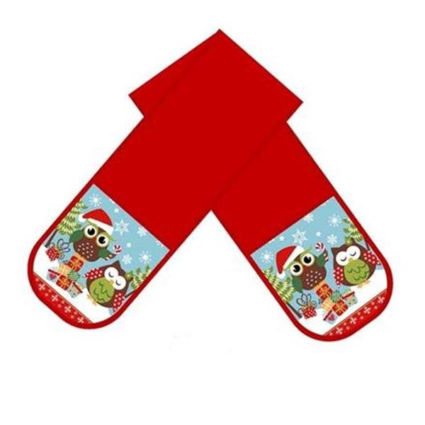 Chňapka velká s oblíbeným motivem "Vánoční sova". Tato velká chňapka se dvěma kapsami je velmi praktická, hlavně při slévání horké vody z hrnců. Materiál - potištěné kapsy - bavlna, jednobarevná prošívaná část - polyester. Rozměry - délka 78 cm, šířka 17 cm. Barva - červená s potiskem vánoční sovy.