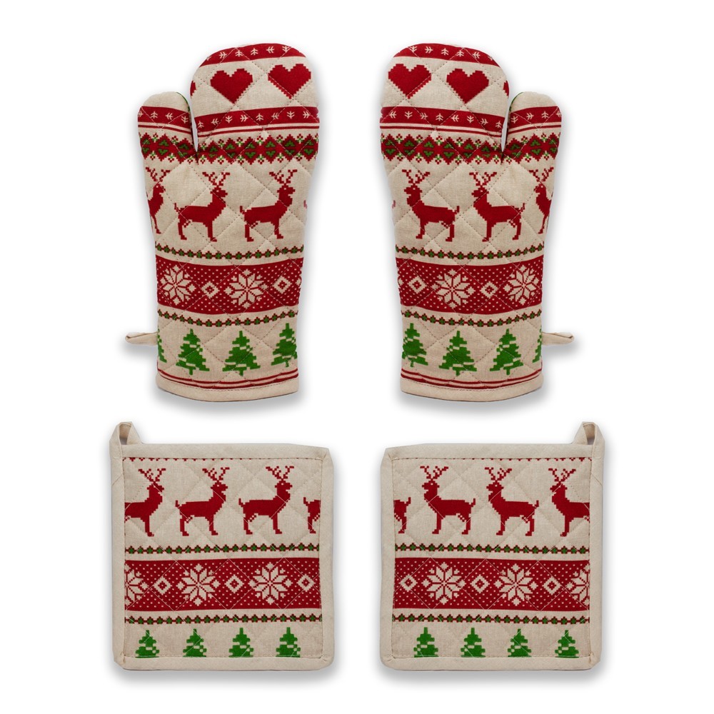 HOME ELEMENTS Chňapka s magnetem a podložka 18*32 + 20*20 cm, Zimní sob