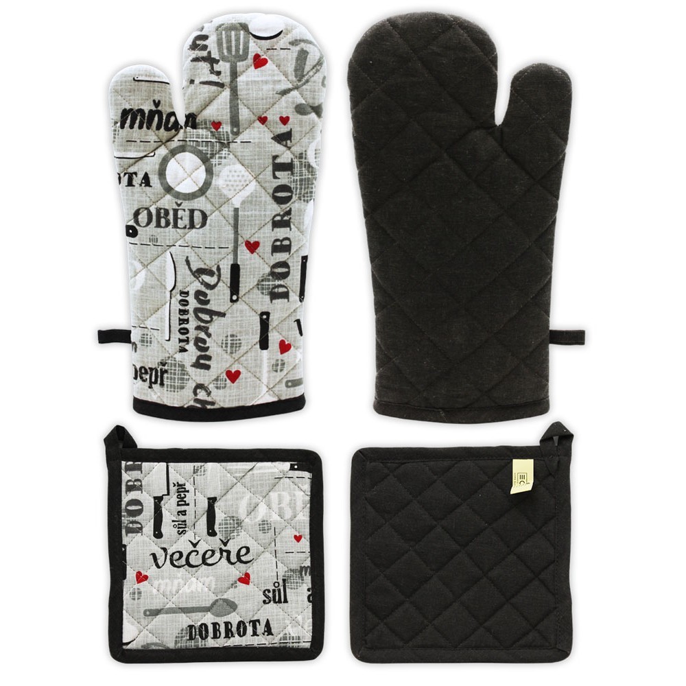 HOME ELEMENTS Chňapka s magnetem a podložka 18*32 + 20*20 cm, Dobrou chuť