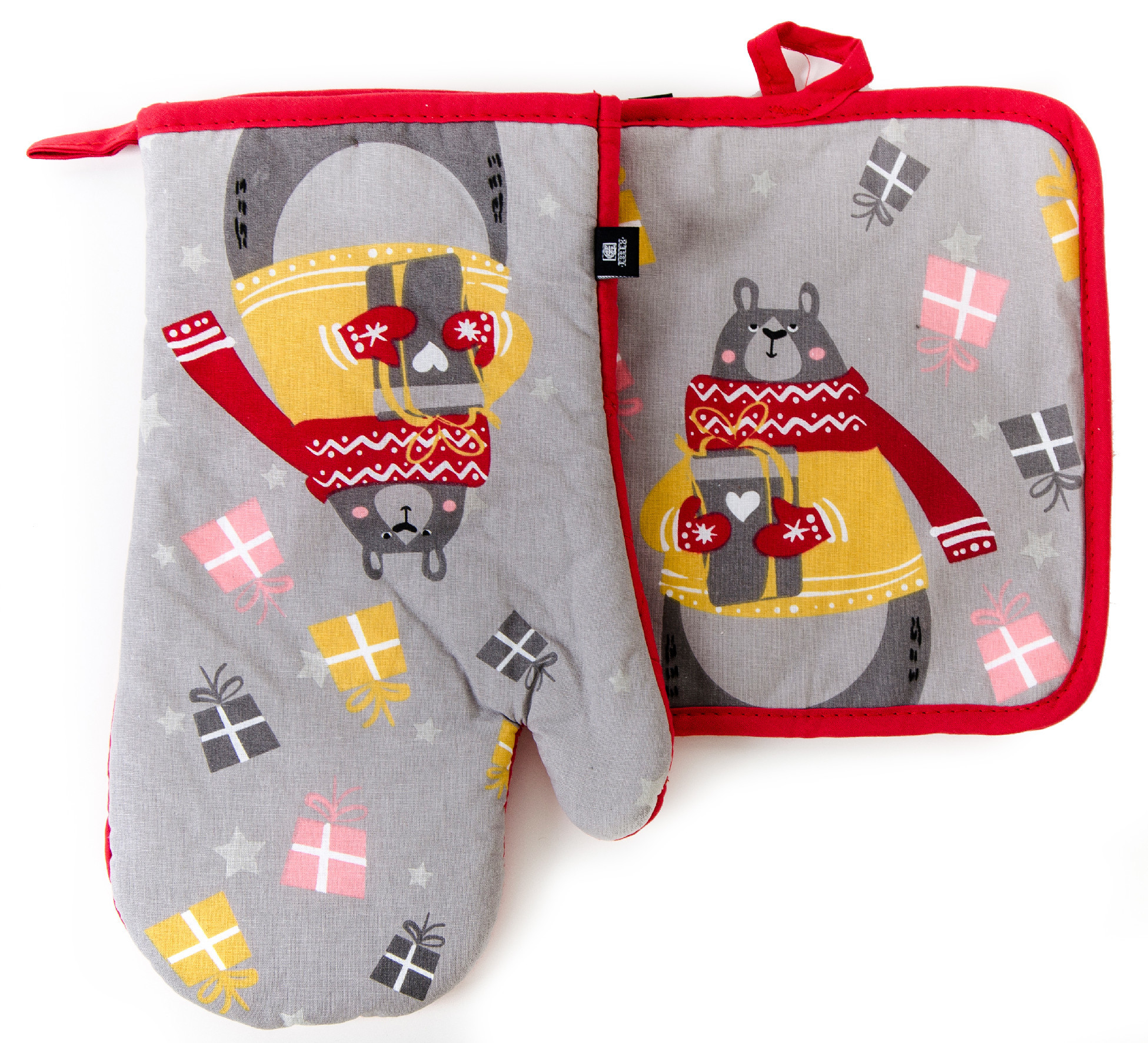 Kuchyňský set rukavice/chňapka WINTER JOY šedá 18x30 cm/20X20 cm ESSEX
