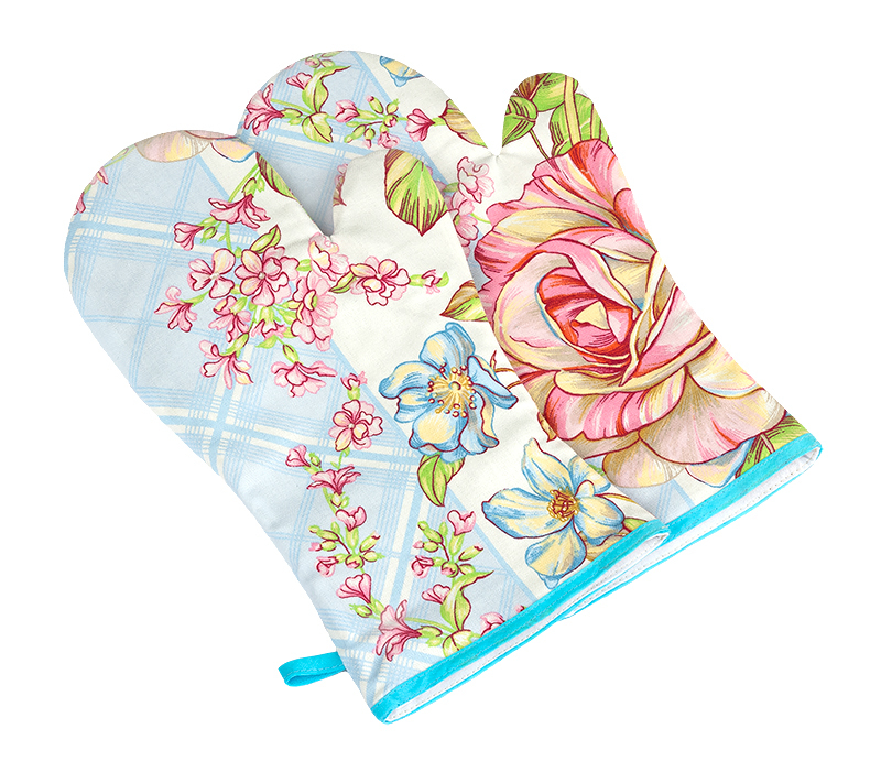 Grilovací rukavice 2ks - růže - sv.modrá, růžová - 20x36 cm