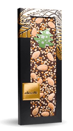 Hořká čokoláda s mandlemi, pomerančem a čokoládovým stromečkem