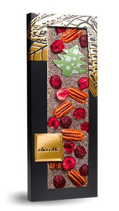 Bílá čokoláda s pekanovými ořechy, višněmi a čokoládovým stromkem