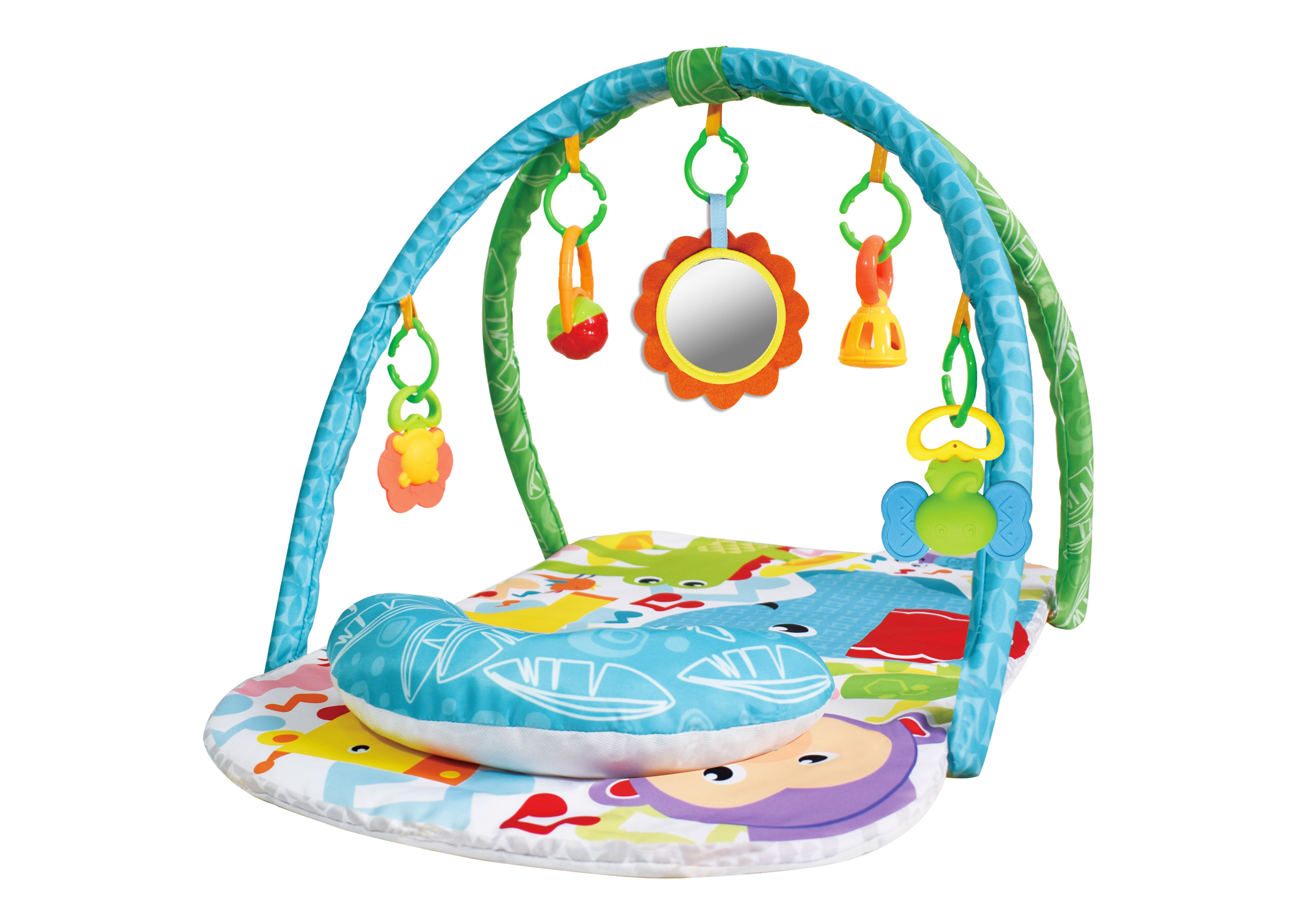 Dečka hrací s obloukem. Na oblouku jsou zavěšené 4 hračky a zrcátko. Rozměry 80x47x52 cm. prečítať celé