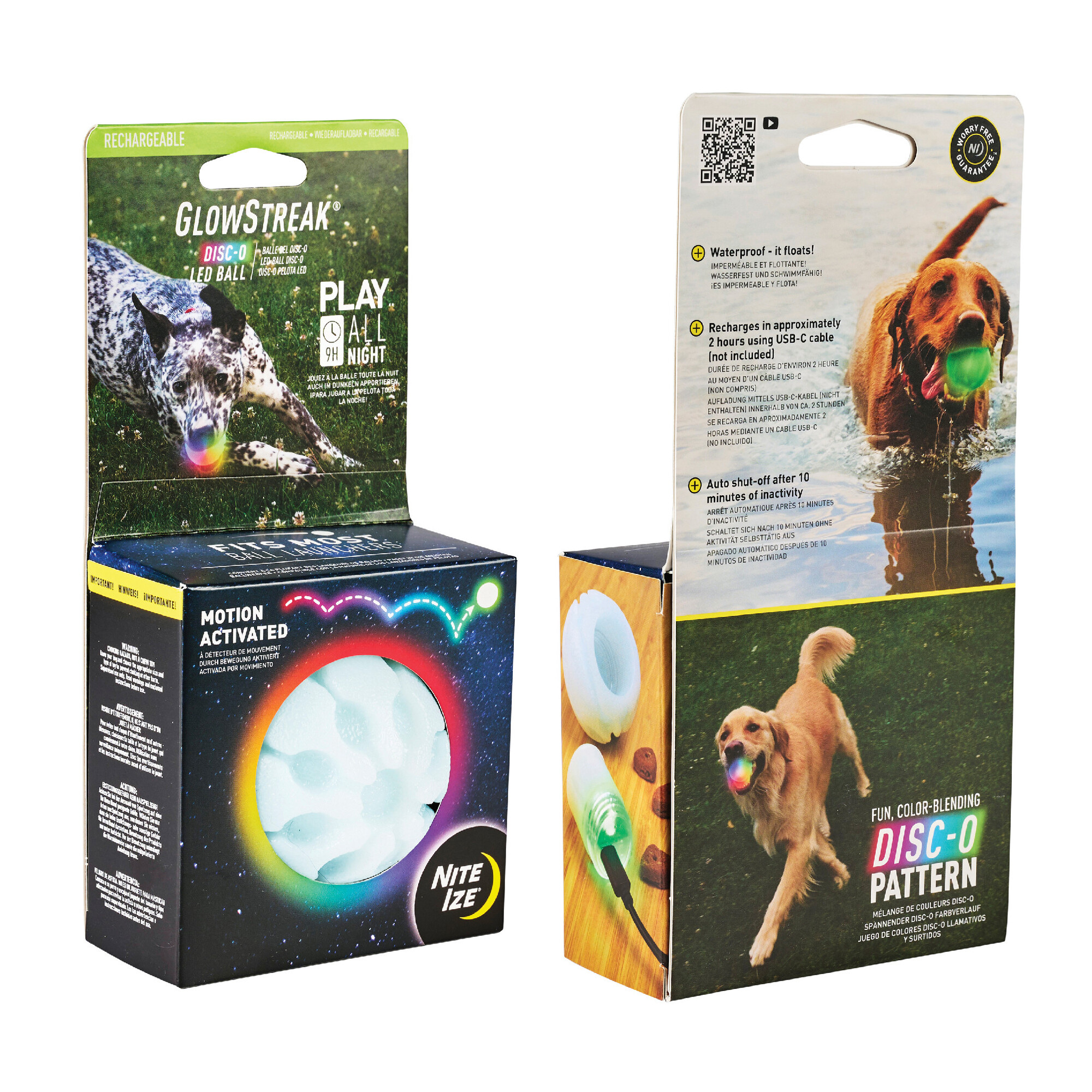 Užijte si aportování i po setmění s dobíjecím LED míčkem GlowStreak. Tento odolný gumový míček má chráněné vnitřní jádro s pokročilým LED modulem, který se aktivuje pohybem. Barevně měnící se LED režim Disc-O s plynulým prolínáním barev rozsvítí míček při každém odrazu a zaručí zábavu od úsvitu...
