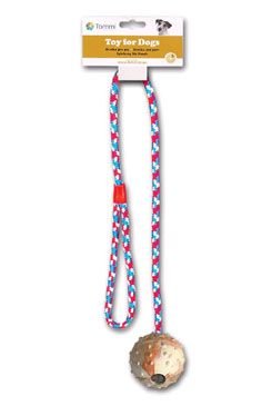 Hračka pes Míč na šňůře s rolničkou 6,5x60cm Tommi
