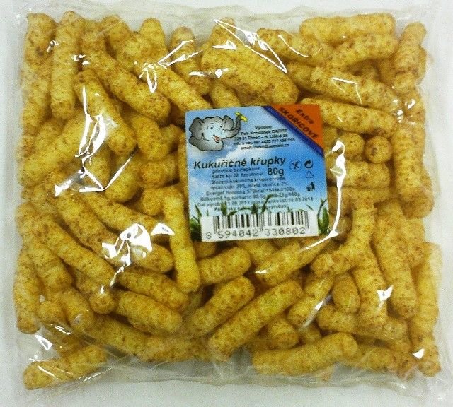 Složení: Kukuřičná krupice, kyselina citrónová, upravený cukr 20%, skořice mletá 2%, voda. Bez barvivJako náhrada za piškoty, pečivo, pochutiny. Křupka je jemná se velice rychle rozpouští v ústech i jako přírodní doplněk stravy kojenců.Dobře se na nich učí jíst pevnou stravu, možné další...