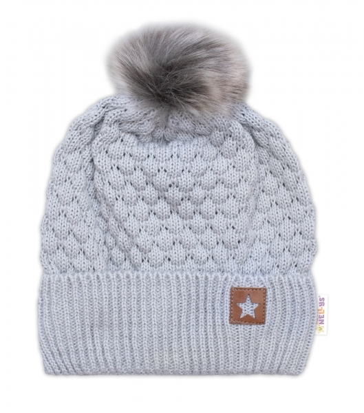 Zimní čepice Star s chlupáčkovou bambulkou - šedá; 98-104 (2-4r)