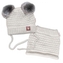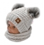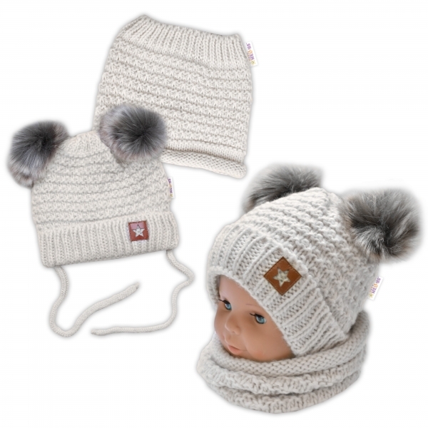 Zimní pletená čepice Star s fleecem a chlupáčkové bambulky+komínek 2D sada, béžový melírek; 98-104 (2-4r)