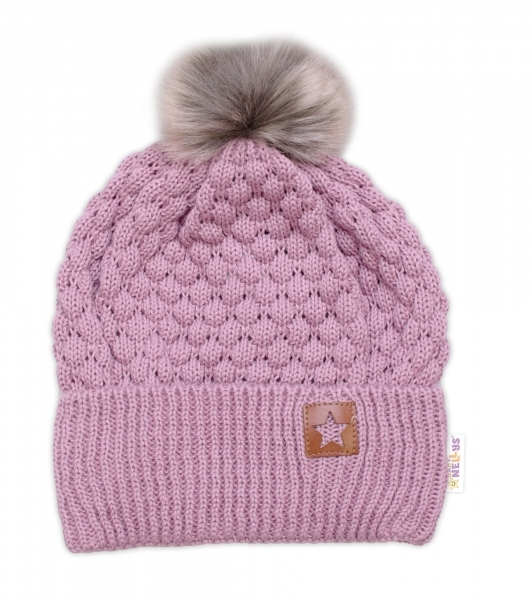 Zimní čepice Star s chlupáčkovou bambulkou - pudrově růžová; 98-104 (2-4r)