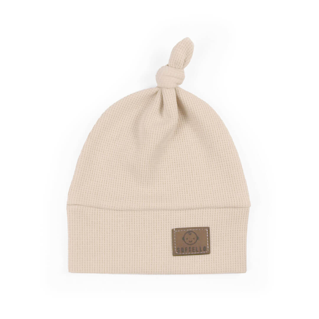 Čiapka pre bábätko s uzlíkom (0-3mes.) - svetlosivé pletené wafle