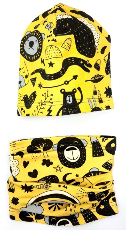 Bexa Jarní, podzimní čepice + komínek, Zvířátka, žlutá/černá, vel. 110; 110 (4-5r); černá, žlutá