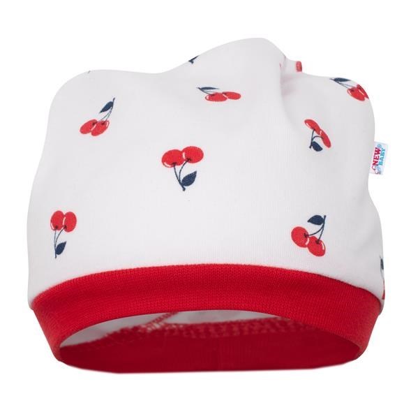 Kojenecká čepička-šátek české značky New Baby Cherry pro všechny malé parádnice. Čepička je ušitá ve stylu šátku s pružným lemem a je celopotištěná třešničkami. Pro New Baby je velmi důležitá spokojenost zákaznika a právě proto vám nabízíme naši kvalitní holčičí letní kolekci Cherry. Složení: 100% bavlna.