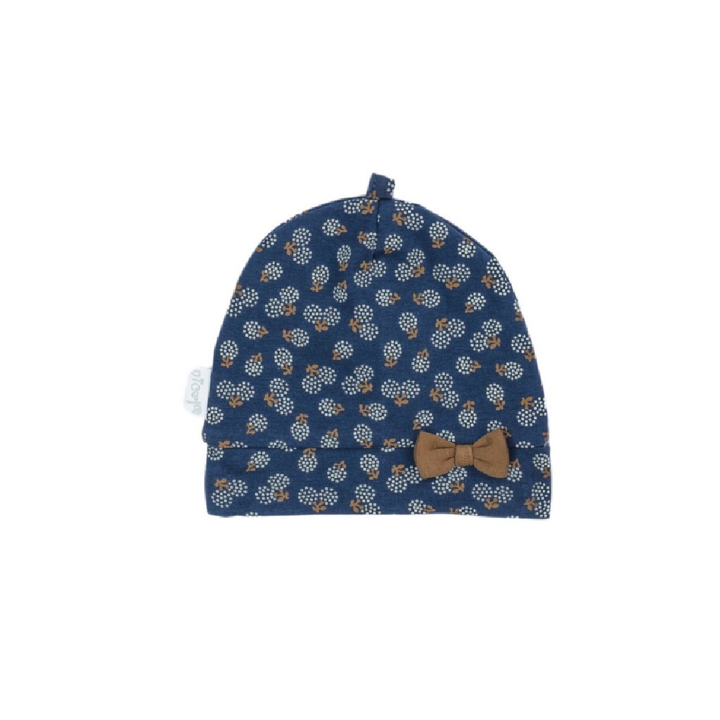 Stylová čepička Nicol Sonia. Čepička je celopotištěná roztomilým vzorem a mašličkou. Skvělá vychytávka, kterou lze využít jako krásný doplněk, nebo jako praktický kousek oblečení. Lem je široký a netlačí na hlavičku miminka. Příjemná na dotek a krásně sedí na hlavičce. Sonia je nová dechberoucí kolekce navržena s ohledem na potřeby našich nejmenších. Složení: 100% bavlna.