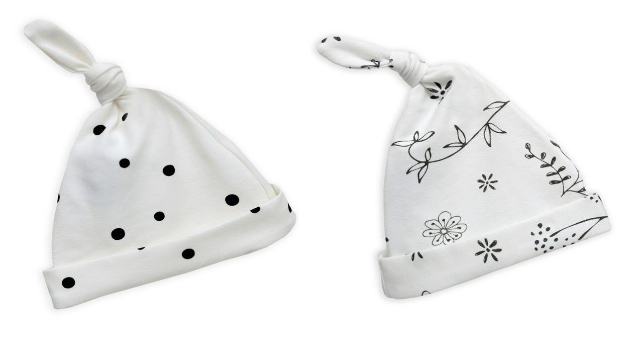 Dětské čepice 0-2 měsíce - sada dvou kusů tečky/Bloom