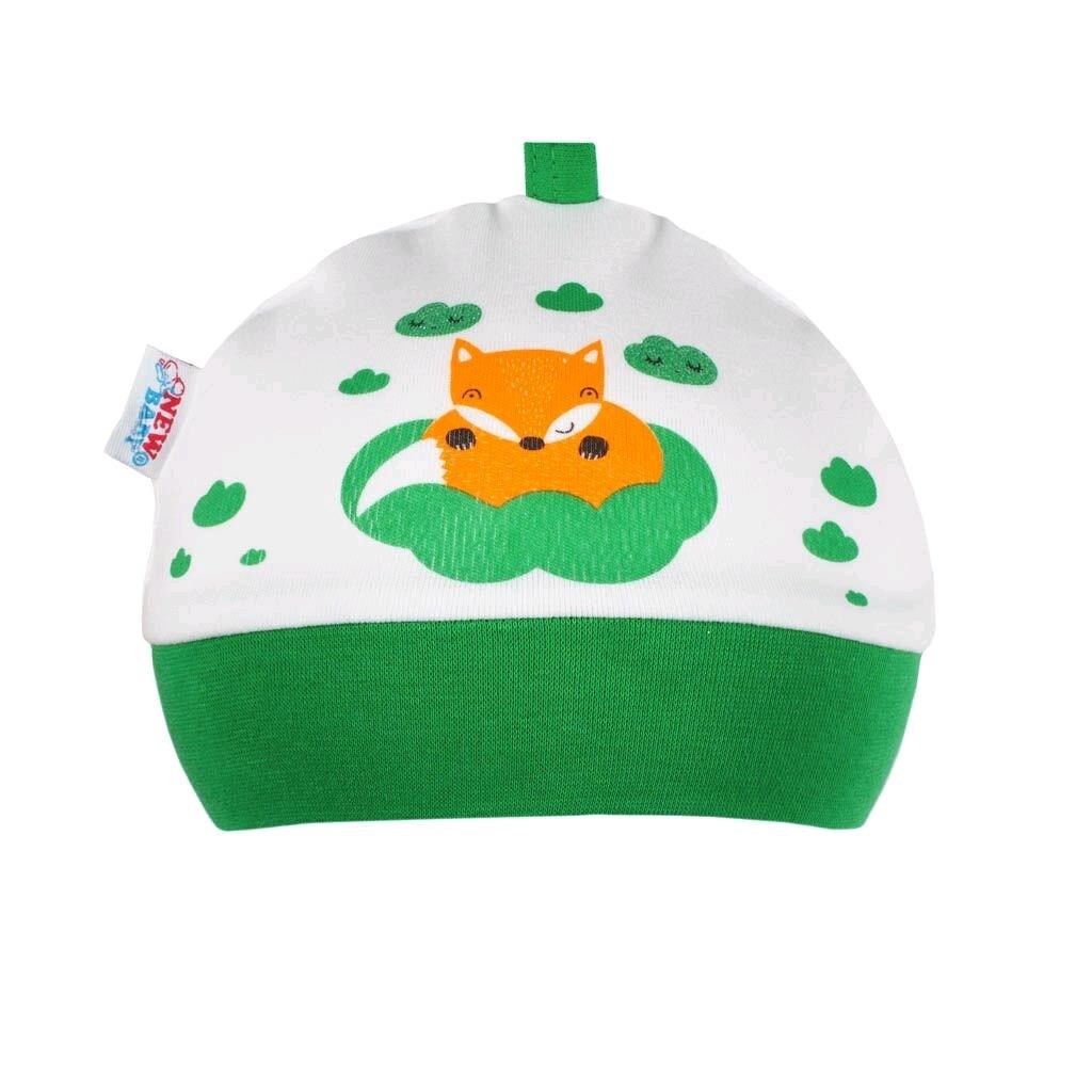 Bavlněná kojenecká čepička české značky New Baby Liška pro miminka. Čepičku zdobí krásný obrázek lištičky, roztomilých obláčků a barevné lemování. Čepička má široký pružný lem po obvodu, který netlačí na hlavičku miminka. Všechny kousky z kolekce jsou navrženy s ohledem na potřeby našich nejmenších. Složení: 100% bavlna.