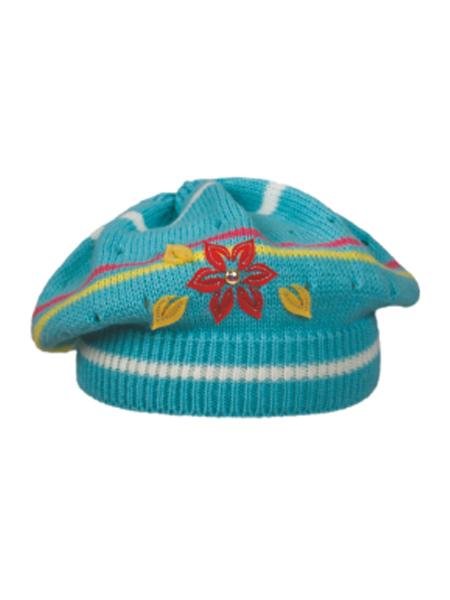 Dětská čepička-baret z jemné pleteniny. Čepička je jednobarevná s pruhy a kytičkou. Složení 100% akryl. Velikost 52-54. Vhodné i pro starší děti. prečítať celé