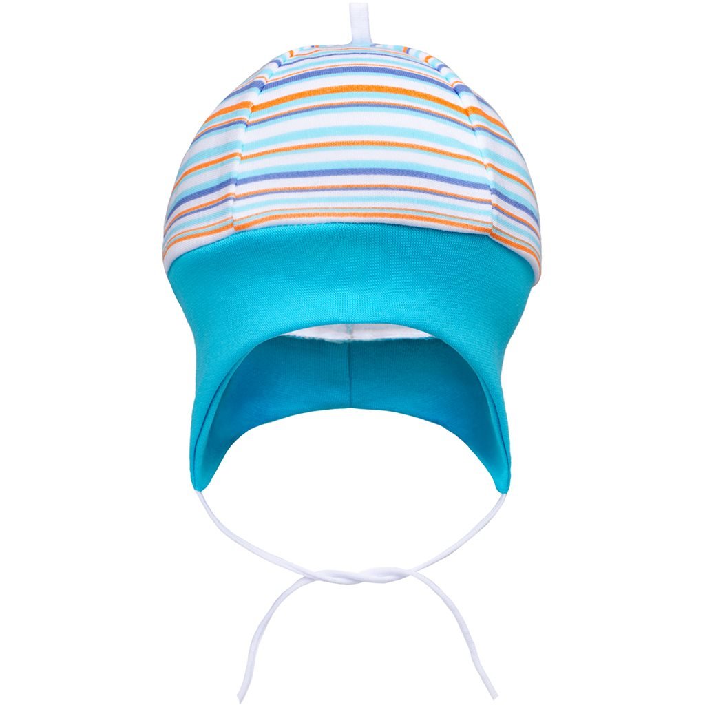 Bavlněná kojenecká čepička New Baby Puppik 2. Čepička má široký pružný lem, který krásně kryje oušká a netlačí, zavazuje se na tkaničky. Čepičku zdobí originální pruhy. Složení: 100% bavlna. Obvod: cca 39 cm. prečítať celé