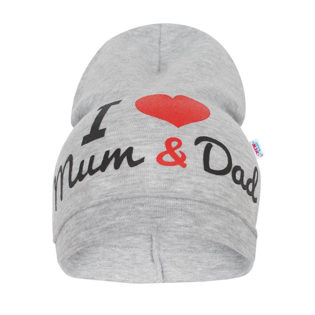Krásná bavlněná čepička New Baby I Love Mum and Dad. Čepičku zdobí krásný obrázek a je ušita z prodyšného materiálu, proto je vhodná pro jarní i podzimní dny. Materiál je pružný. Ideální pro miminka od 9 do 18 měsíců. Složení: 95% bavlna 5% elastan. Obvod kolem hlavičky cca 42-46 cm.