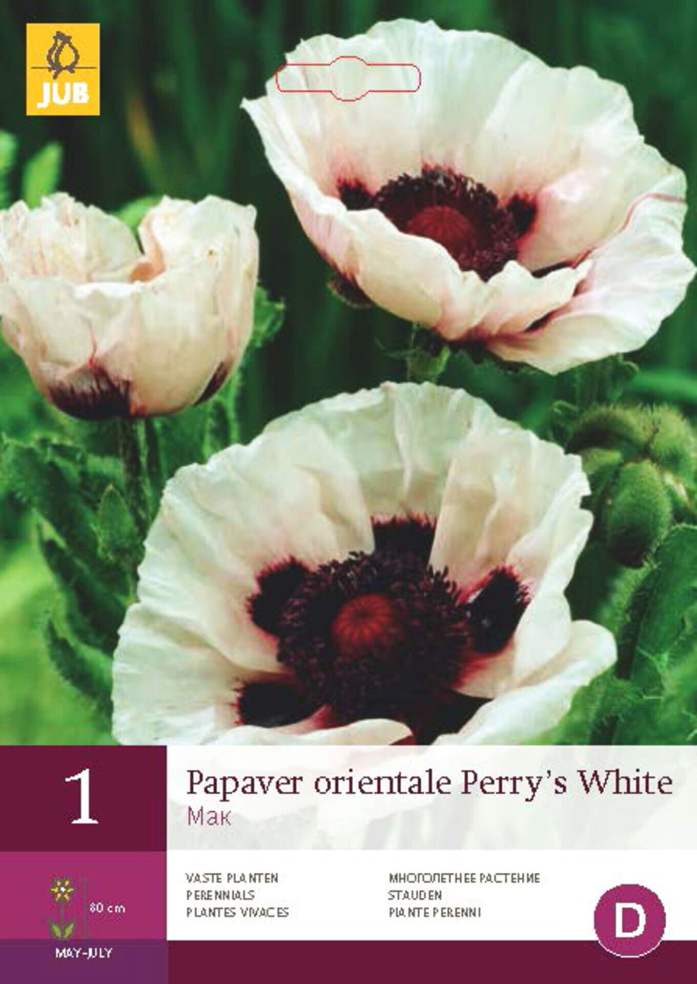 Druh: MÁKZemě původu: HolandskoVelikost cibule: hlízaVýška rostliny: 80 cm Výsadba: březen - květenHloubka výsadby: 10 cmSpon: 15-20 cmOdrůda:ORIENTALE PERRY´S WHITE: 1 karta á 1 ks hlíz Cibuloviny balené v kartách s barevným obrázkem. Základní údaje o pěstování formou piktogramu. Cibuloviny...