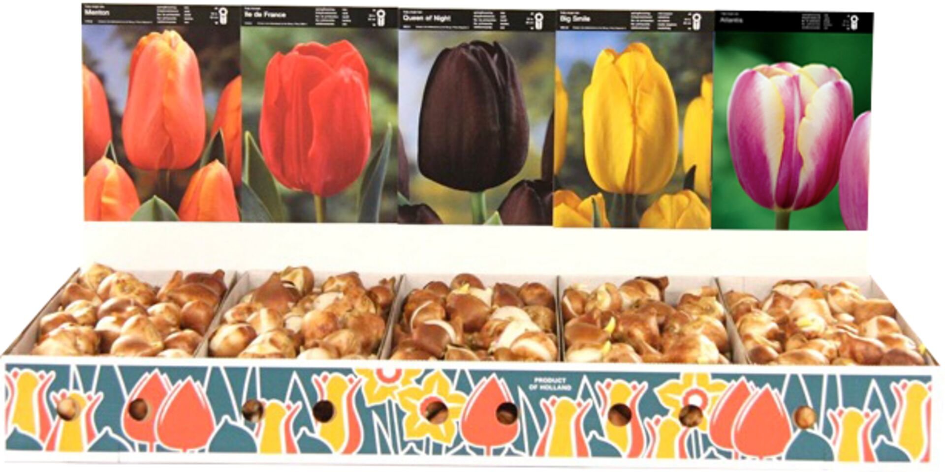 Druh: TULIPÁNZemě původu: HolandskoVelikost cibule: obvod 11-12 cmOdrůda:Menton: 70ksKingsblood: 70ksQueen of Night: 70ksClearwater: 70ksLibrije: 70ksCibuloviny obsažené v boxu nejsou mořené. prečítať celé