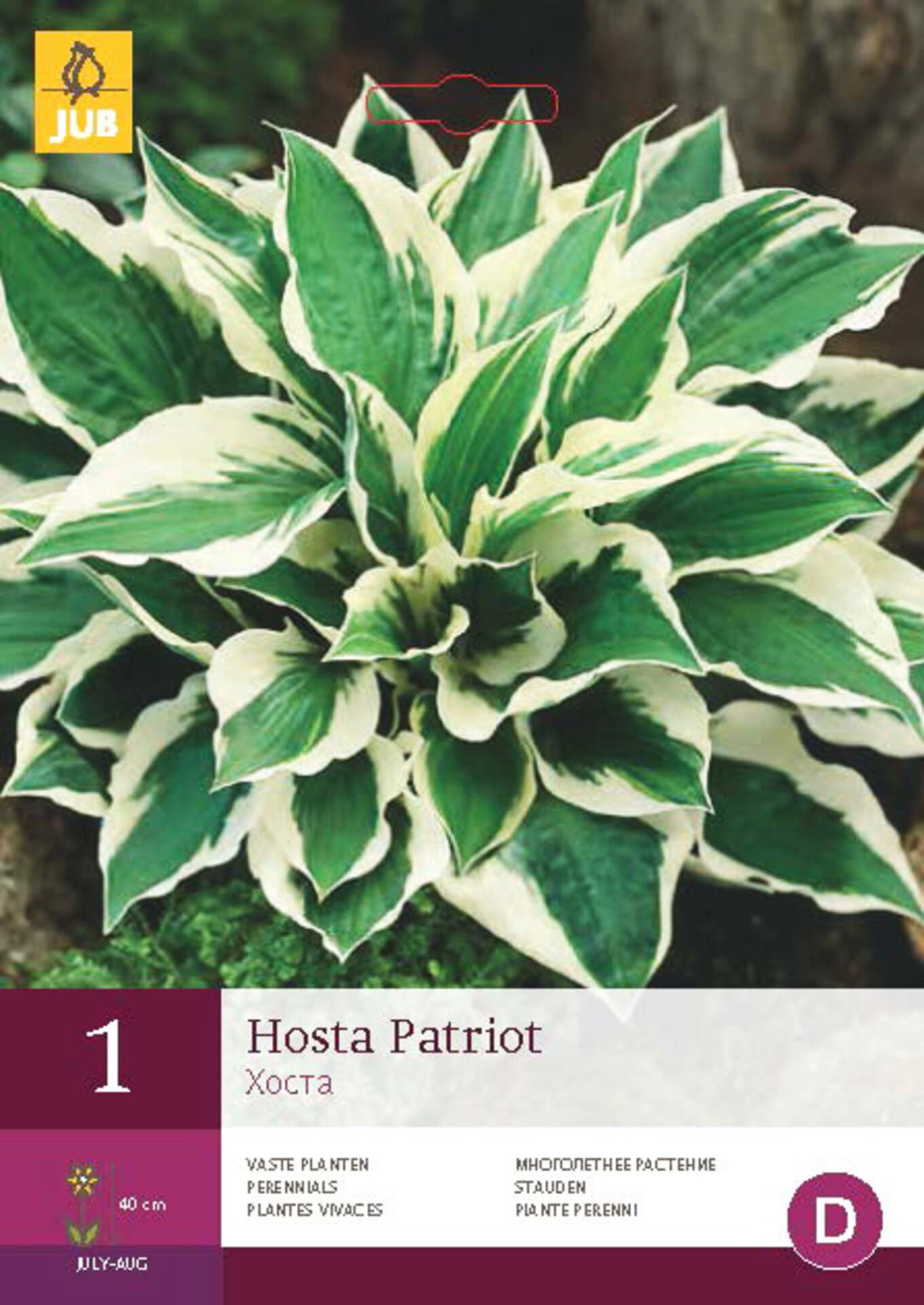 Druh: BOHYŠKA / HOSTAZemě původu: HolandskoVelikost cibule: hlízaVýška rostliny: 40 cm Výsadba: březen - květenHloubka výsadby: 10 cmSpon: 30 cmOdrůda:PATRIOT: 1 karta á 1 ks hlíz Cibuloviny balené v kartách s barevným obrázkem. Základní údaje o pěstování formou piktogramu. Cibuloviny nejsou...