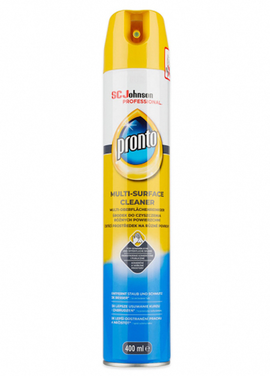 Jednoduchá aplikácia a efektívne čistenie sú ďalšími dôvodmi, prečo si Pronto obľúbite. Stačí nastriekať na povrch alebo na utierku a vyleštiť do sucha. Odporúča sa používať na povrchy s povrchovou úpravou a vyhýbať sa nepovrchovanému drevu, ako aj niektorým špecifickým povrchom, napríklad vnútru vane.
