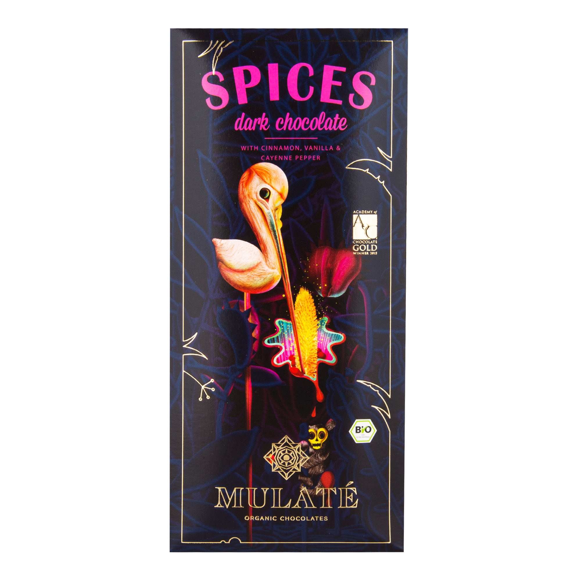 Čokoláda hořká 70 % s příchutí skořice, vanilka a kajenský pepř 80 g BIO MULATÉ
