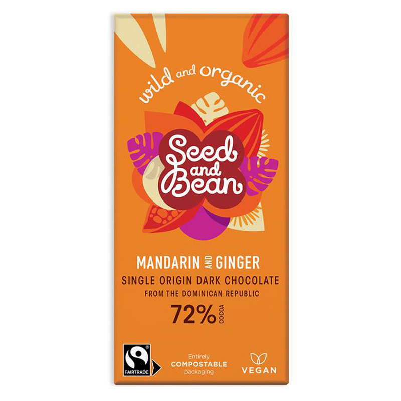 BIO hořká čokoláda se zázvorem a mandarinkovým olejem Seed&Bean 85g. Fairtrade čokoláda, 72% kakaa. Vegan. prečítať celé