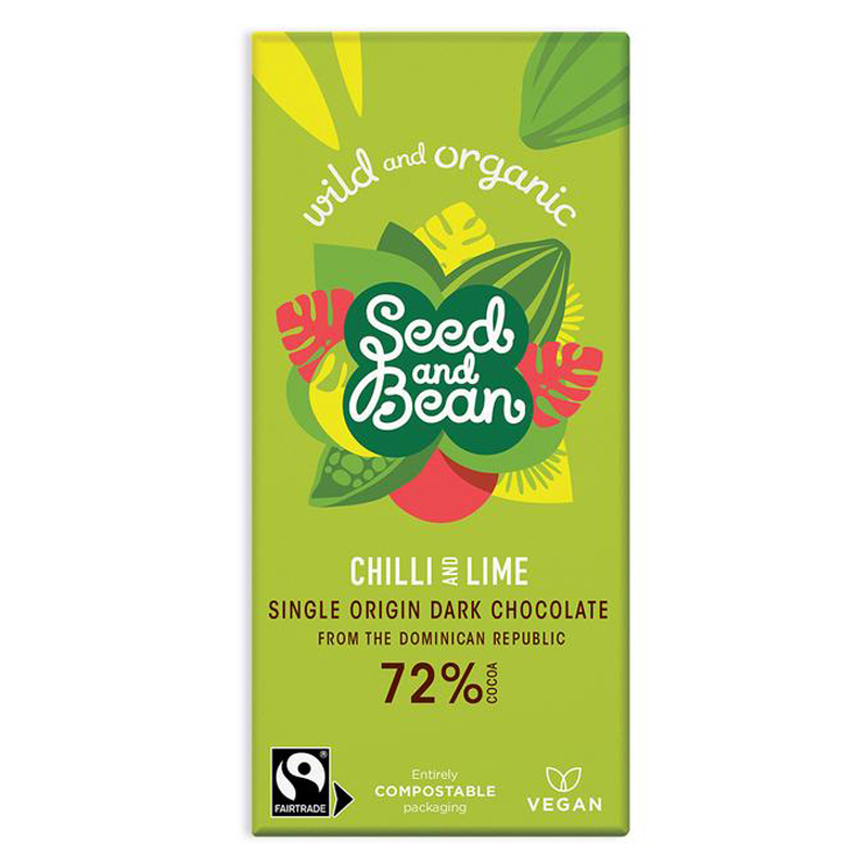 BIO hořká čokoláda s čili a limetkou Seed&Bean 85g. Fairtrade čokoláda, 72% kakaa. Vegan. prečítať celé