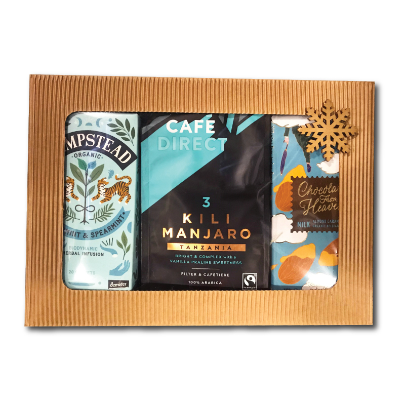 Dárkový modrý balíček mátový čaj, Kilimanjaro mletá káva a mléčná čokoláda s mandlemi