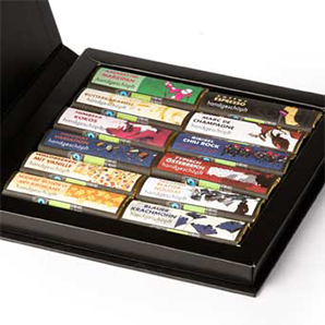 Luxusní dárková kolekce 12 různých ručně plněných čokoládek Zotter v sofistikované dárkové krabičce. 12 různých svůdných příchutí od jedné z nejlepších čokoládoven Evropy i světa srovnaných do dárkové kazety otevírací jako kniha.Každá z čokoládek je kompletně vyrobena v čokoládovně Josefa Zottera...