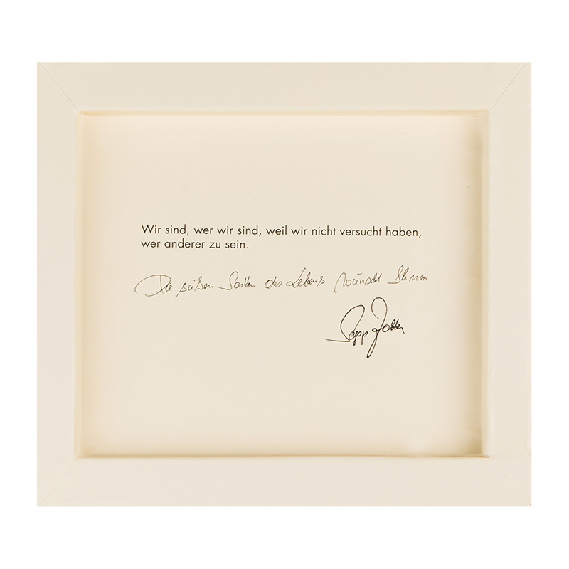 Pod čokoládami obdarovaný nalezne motto v němčině "Jsme to, čím jsme, protože jsme se nesnažili být jinými." a osobní vzkaz pana Zottera, zakladatele čokoládovny.
