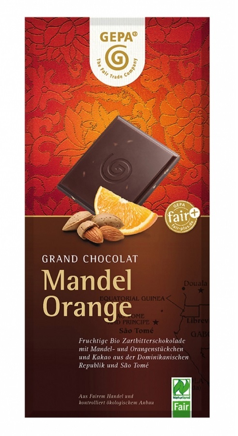 Gepa Bio hořká čokoláda 55% s mandlemi a pomerančem, 100 g