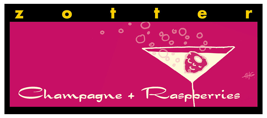 Skvělá Fair Trade hořká čokoláda se 70 % bio kakaa a svůdným čokoládovým ganache zdokonaleným jemným šampaňským Fleury Marc de Champagne (40 %). Doprovází ho ganache s přirozenou barvou a chutí mnoha malin (20 %). Skvělý chuťový požitek bez lepku, s obsahem alkoholu.