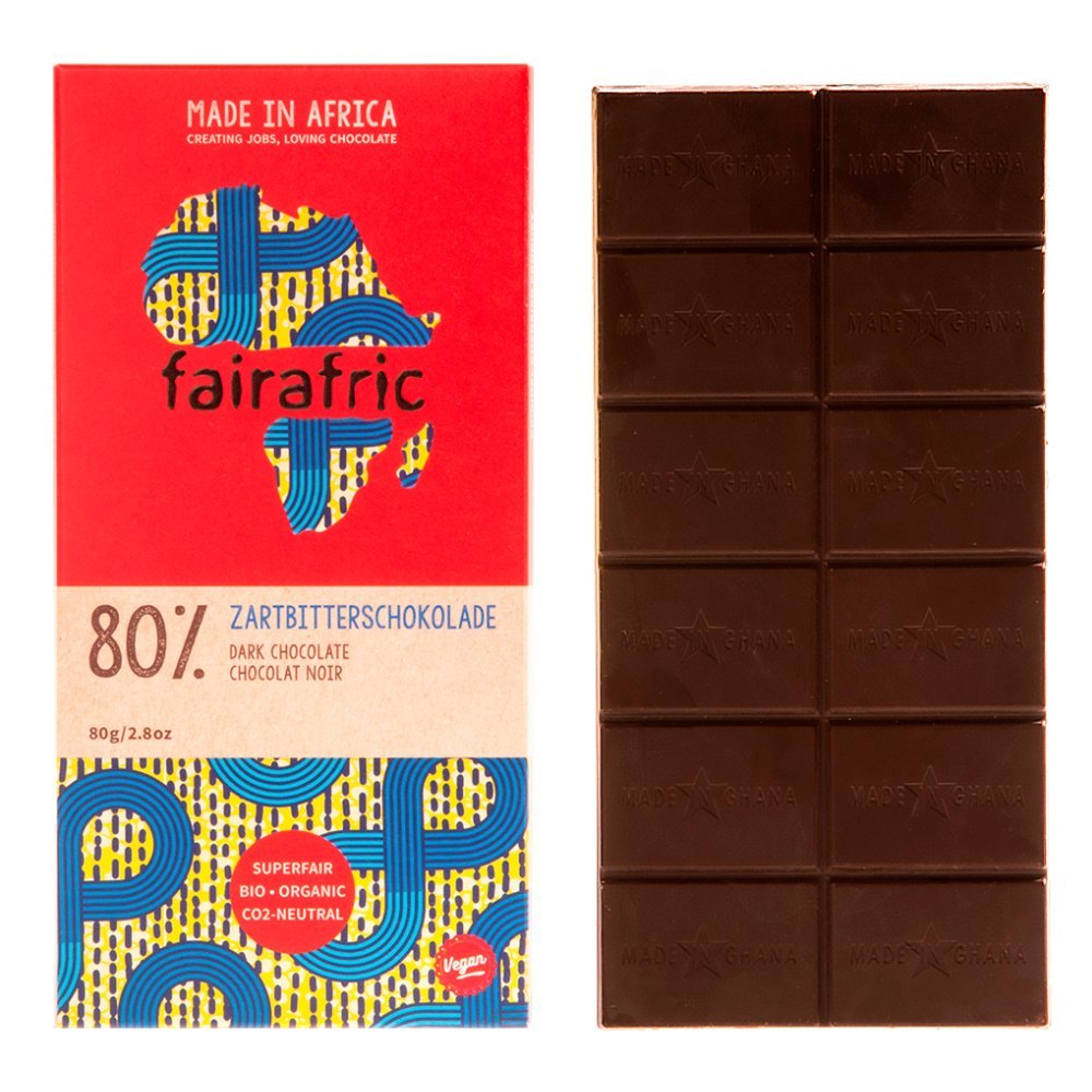 Fairafric Bio hořká čokoláda s 80 % kakaa, vyrobená v Ghaně, 80 g