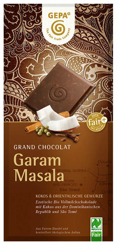 Gepa Bio mléčná čokoláda Garam Masala, 100 g