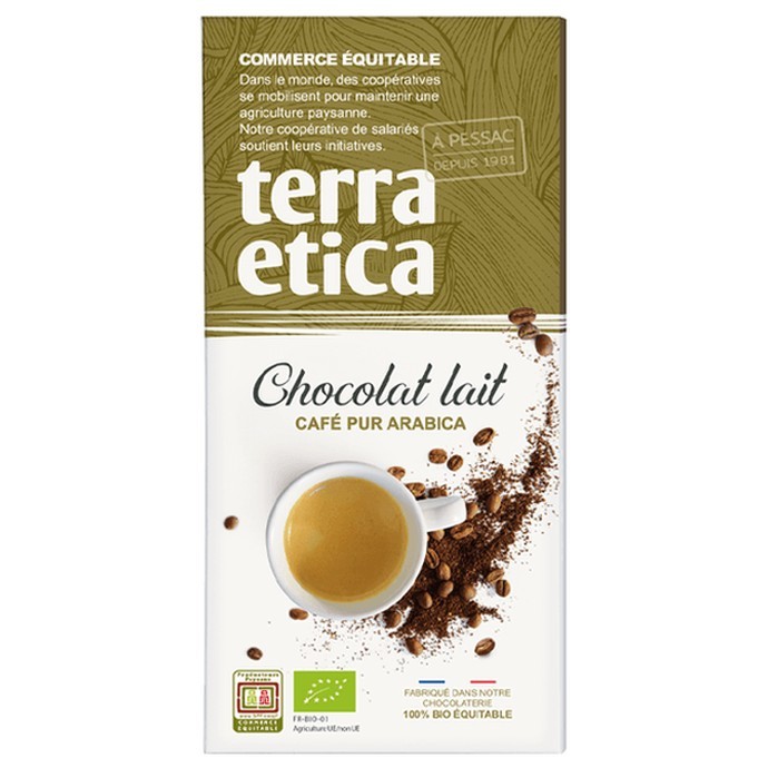 Terra Etica Bio mléčná čokoláda s kávou arabica, 100 g