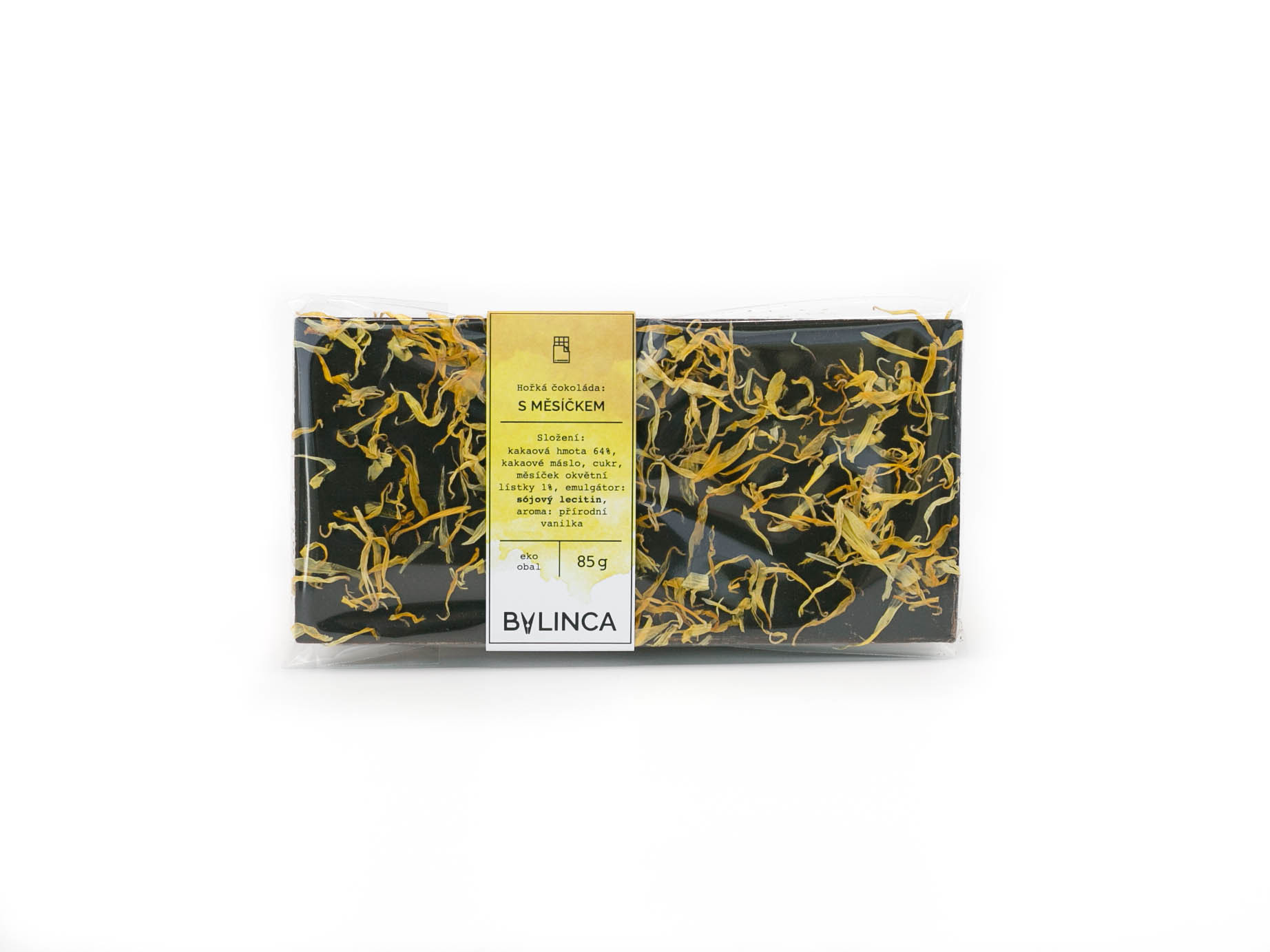 Výrazná hořká čokoláda posypaná okvětními lístky měsíčku aprovoněná vanilkou. Žádné aromata nebo esence, ale zrníčka pravé vanilky. Voní, křupe a zároveň se pomalu rozplyne na jazyku. prečítať celé